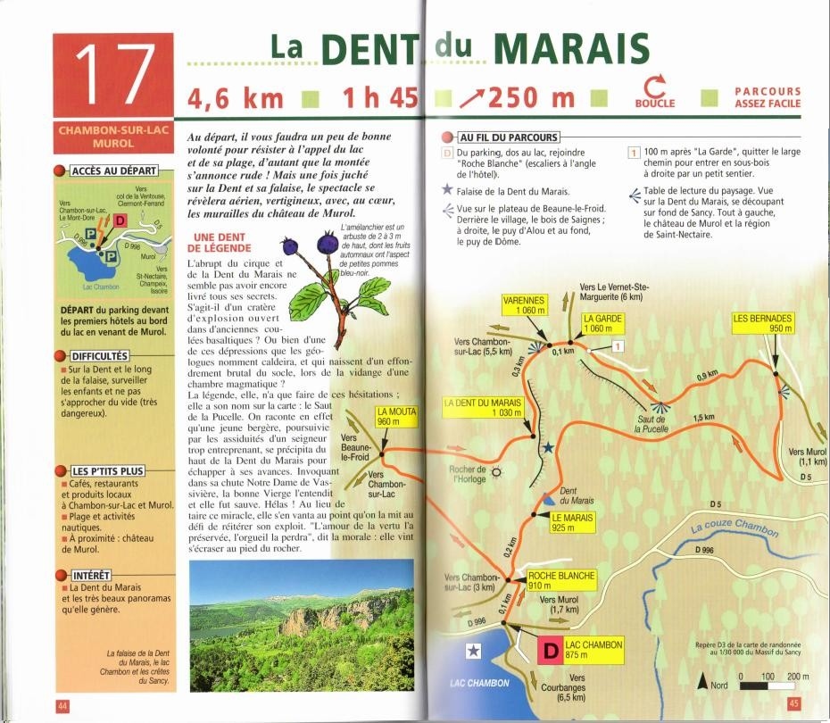 La Dent du Marais, ou 'Saut de la Pucelle', domine le lac Chambon. Elle résulte d'une éruption volcanique, formant ainsi une imposante 'aiguille' rocheuse de 100 m. de haut à 943 m. d'altitude, telle une falaise.