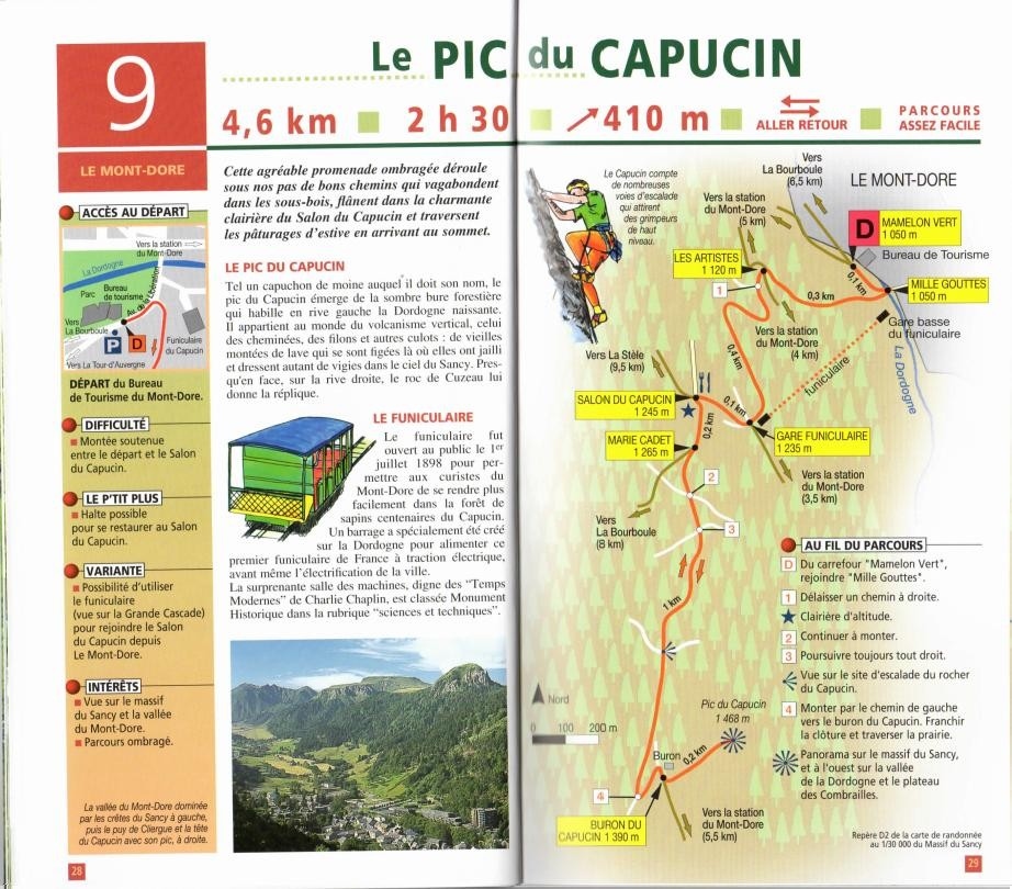Après une ascension de 45 mn par le chemin des 'mille gouttes' à travers une hêtraie, vous découvrirez la clairière du Salon du Capucin, qui vous invite au repos et à la quiétude. De là, un entrelacement de chemins vous emmènent au coeur d'une superbe sapinière. Le GR30 vous conduit vers le sommet du Pic du Capucin (environ 45mn de marche) par un sentier ombragé. Le sommet vous offre une vue magnifique sur la Vallée de la Haute-Dordogne et sur le Massif du Sancy.