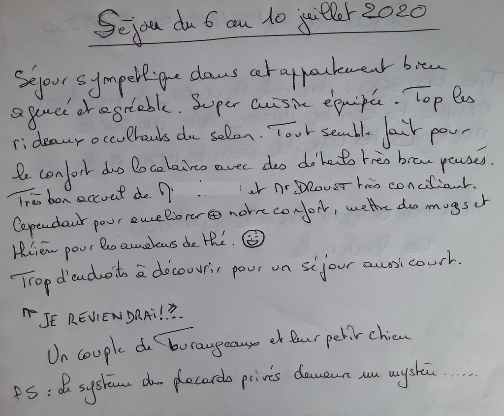- Ce sera avec plaisir que nous vous accuieillerons de nouveau si le coeur vous en dit.